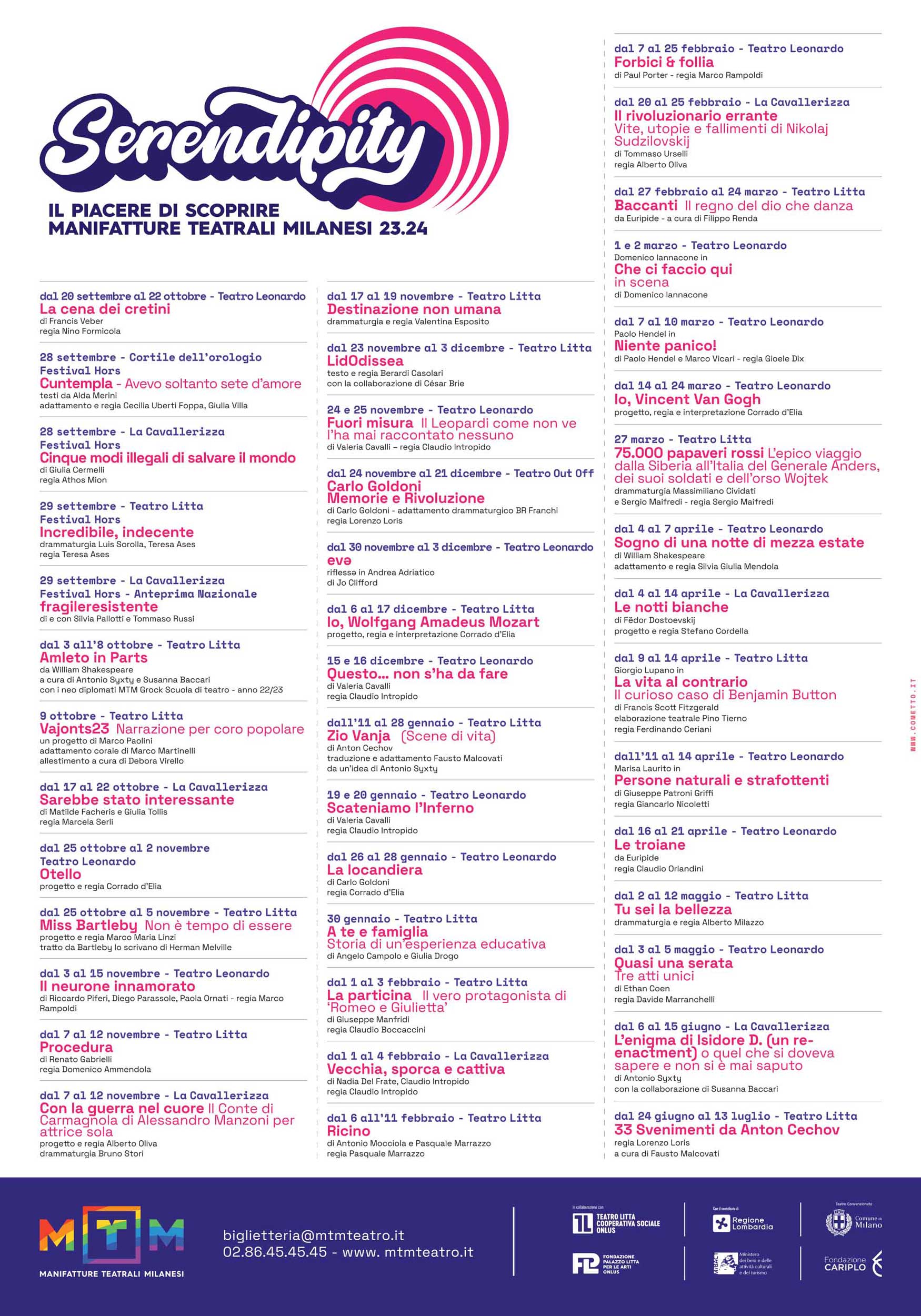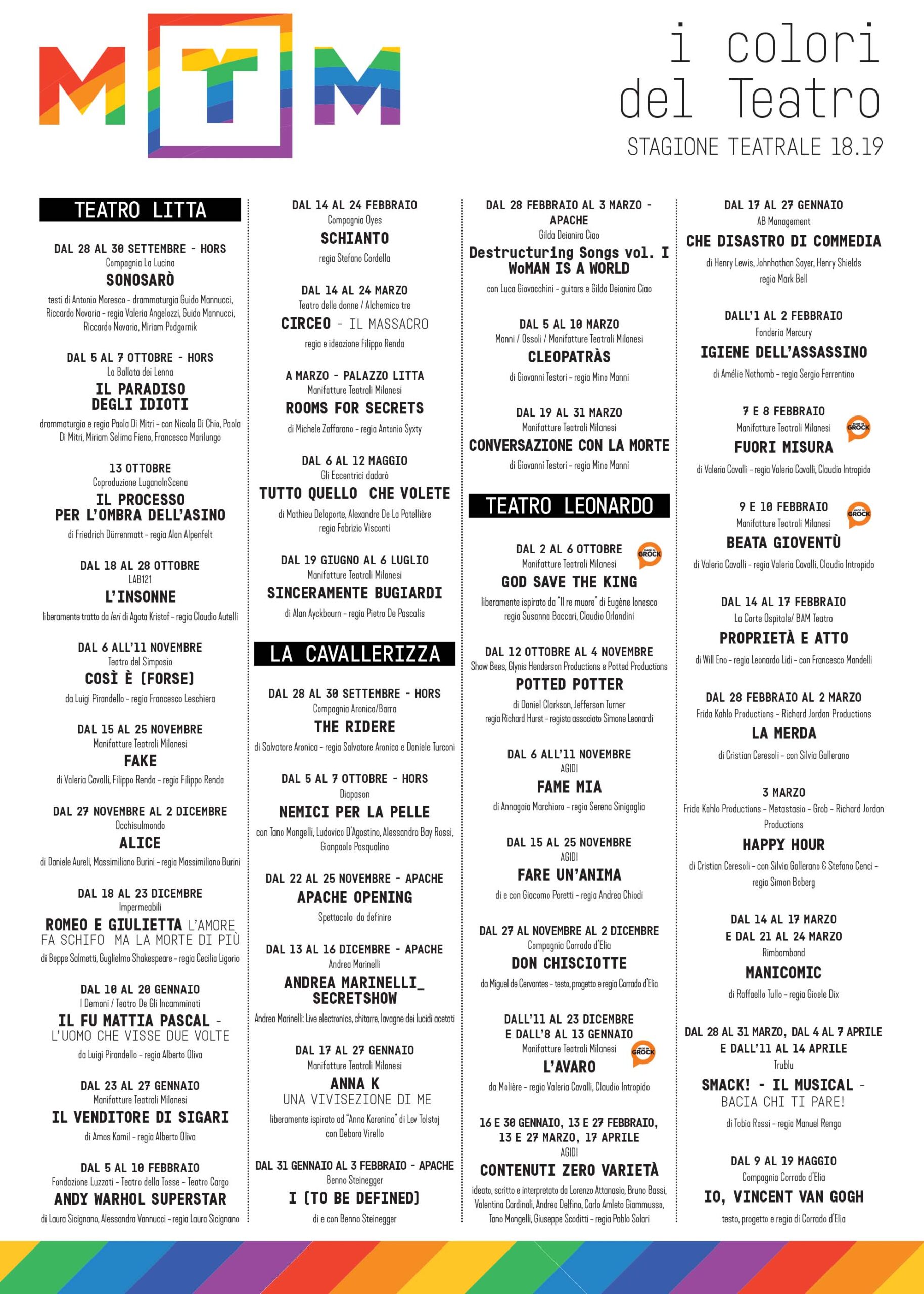 Qui puoi ritrovare gli spettacoli che hanno attraversato le nostre passate stagioni tra produzioni, ospitalità e progetti speciali. Esplora anno per anno, rivedi titoli, artisti e percorsi che hanno costruito la storia di Manifatture Teatrali Milanesi