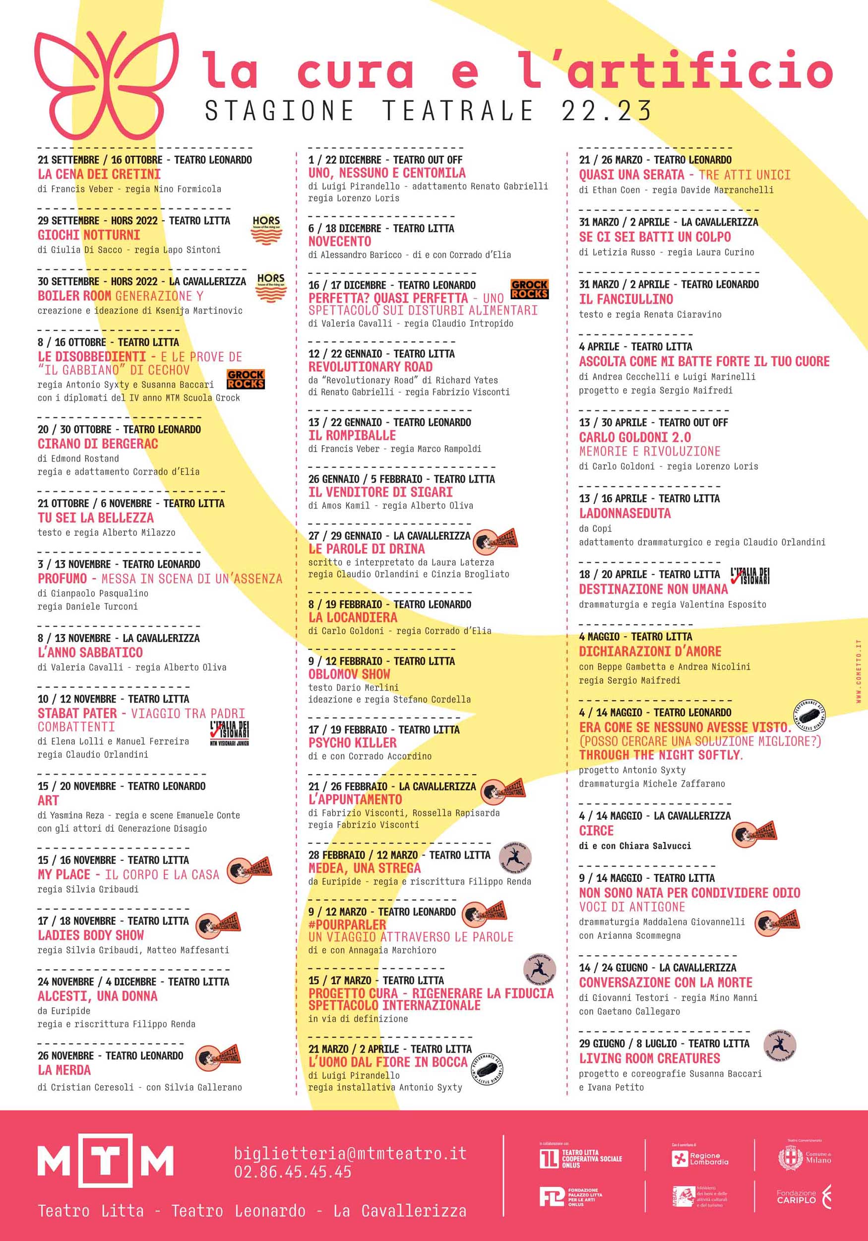 Il sentimento che ci anima è quello di sentirci aperti, disponibili, accoglienti e di avere cura di momenti che durante tutto l’arco dei prossimi mesi ci terranno compagnia con artisti e spettacoli che si propongono come occasioni di svago, divertimento, riflessione.